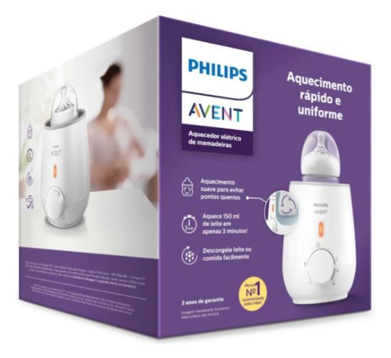 Esse produto é especial para facilitar a sua rotina com o seu bebê, e nos dias em que você está sem muito tempo, para aquecer o leite do bebê de forma fácil e prática pode ajudar muito. O aquecedor de mamadeiras Philips Avent esquenta o leite em apenas 3 minutos. Fácil de operar, possui um ajuste prático de descongelamento e também pode ser usado para aquecer comida de bebê. Compacto, simples e adaptado para mamadeiras e recipientes Philips Avent. Compre e mantenha o leite do seu bebê sempre quente.